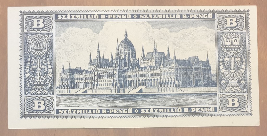Hyperinflation (>50% inflation per month) of the Pengo” began in August 1945, reaching its peak in July 1946 at 4.19×10^26% inflation per month. That was the equivalent of 207% per day with prices of common goods doubling every 15 hours. This continued till August 1946, when the government introduced a new currency called the Forint, worth 400,000 Trillion Pengo. During the time of hyperinflation the government introduced 2 new denominations for notes, the MPengo” (1 Million Pengo”) and the BPengo” (The 1 Billion Pengo).