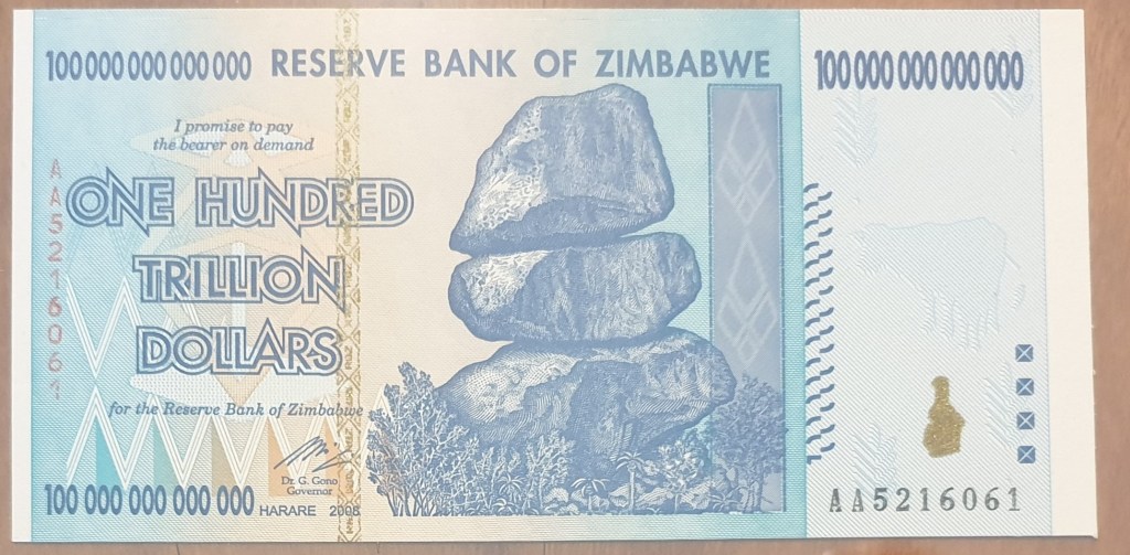 This note is the outcome of this incredible inflation, the second highest denomination note in history and the highest denomination note by Zimbabwe, but ironically worth almost nothing.